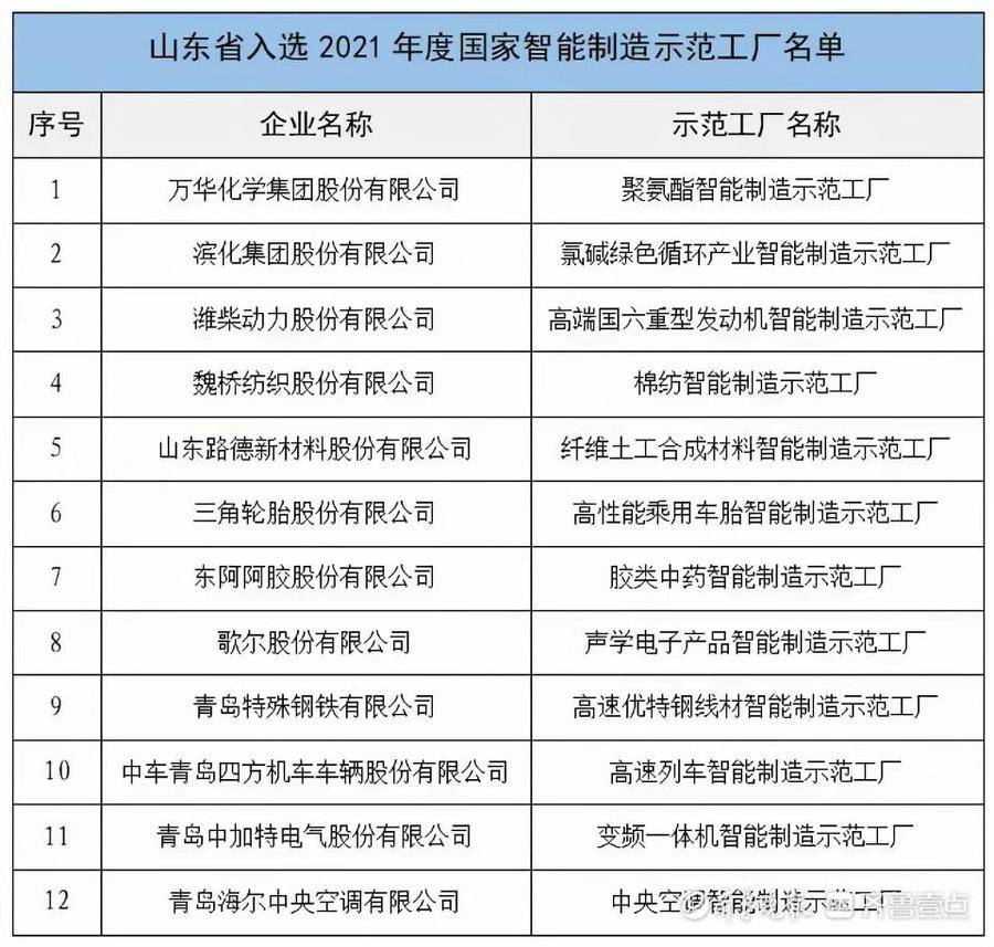其中,智能制造示范工廠中,有來自濱州的濱化集團氯堿綠色循環(huán)產(chǎn)業(yè)智能制造示范工廠,有來濰坊的濰柴動力高端國六重型發(fā)動機智能制造示范工廠,有來自聊城東阿阿膠的膠類中藥智能制造示范工廠等。