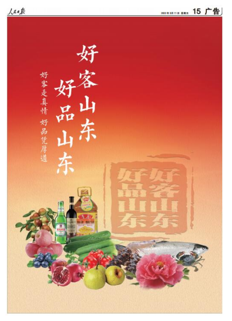 今年3月,人民日報就用四個整版刊發“好客山東 好品山東”公益海報,讓山東人熱情好客、山東好品廣受歡迎的形象躍然紙上。
