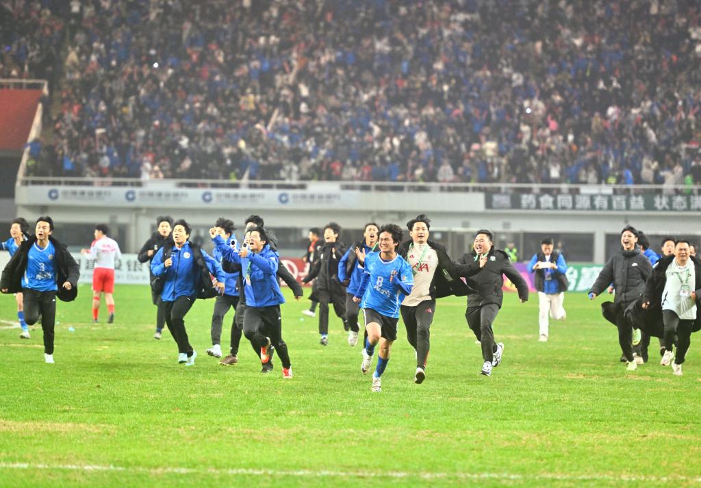 12月21日,在2025湖南省足球聯賽半決賽后,常德隊慶祝勝利。 郭立亮 攝