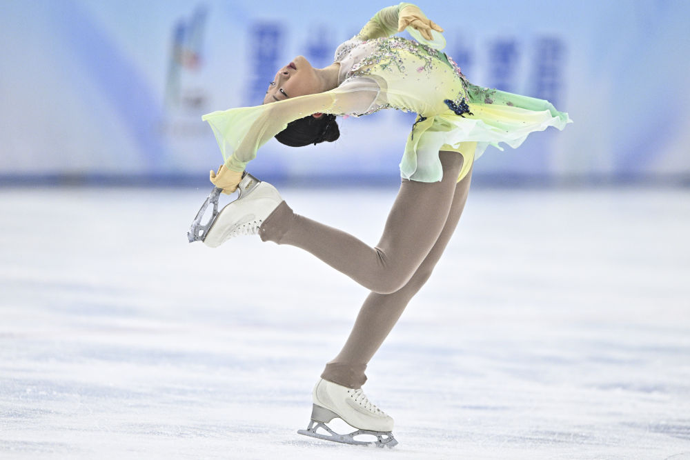 女單自由滑比賽隨后進行,14歲小將金書賢以208.85的總分獲得冠軍,張瑞陽和朱易分列第二、三位。