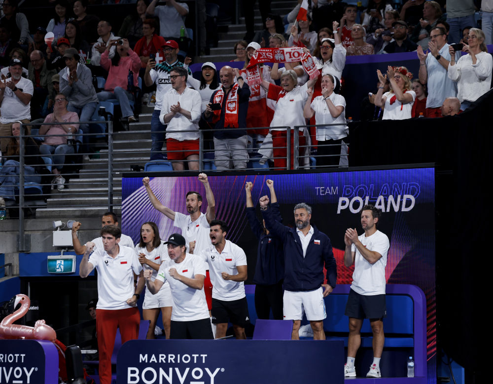 波蘭男單選手胡爾卡奇隨后與40歲的瑞士老將瓦林卡展開對抗。第一盤,胡爾卡奇抓住第4局破發的機會,以6:3先聲奪人。第二盤幾乎是第一盤的翻版,只不過這次是瓦林卡在第4局破發,以6:3扳回一城。決勝盤戰況再次復制,又輪到胡爾卡奇在第4局破發,以6:3拿下比賽,幫助波蘭隊將大比分扳平。