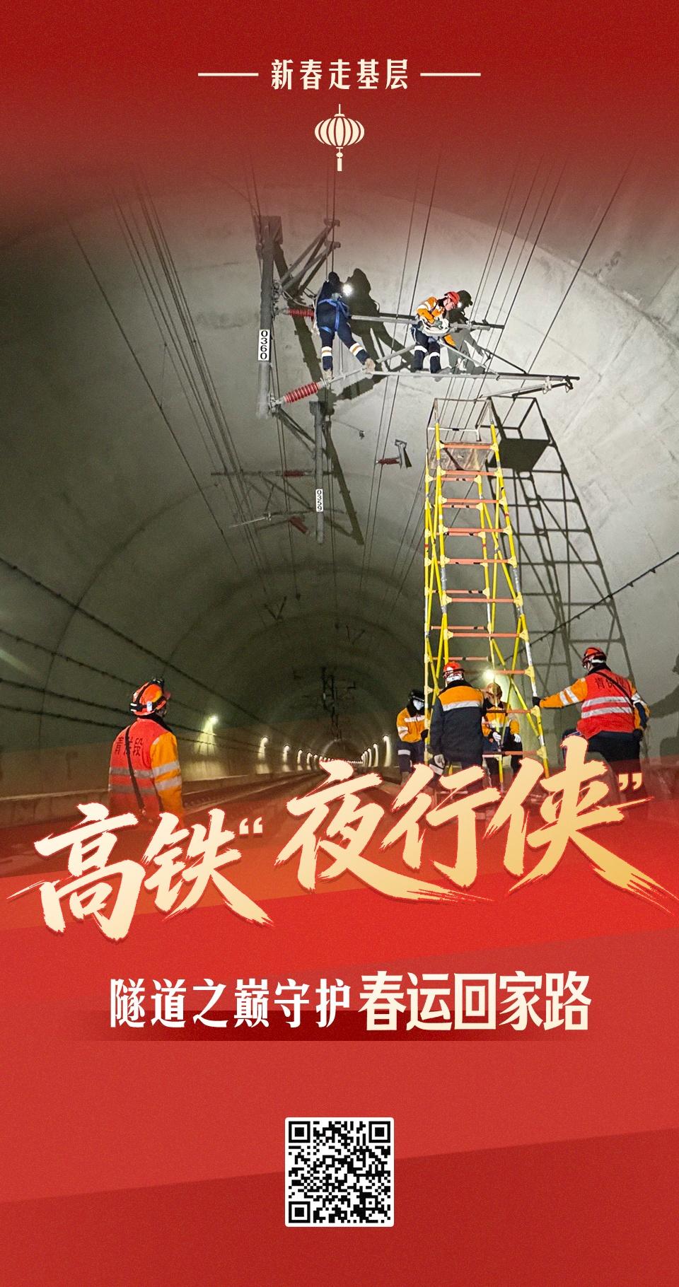 隧道外,萬家燈火漸次熄滅;隧道內(nèi),頭燈星光依舊閃爍。這群“夜行俠”用一夜夜的攀爬檢修,換來白天一趟趟高鐵的平穩(wěn)飛馳。