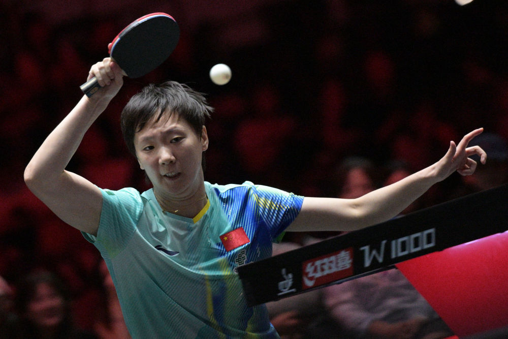 資料圖:孫穎莎在比賽中回球。新華社發(鄧智煒 攝)