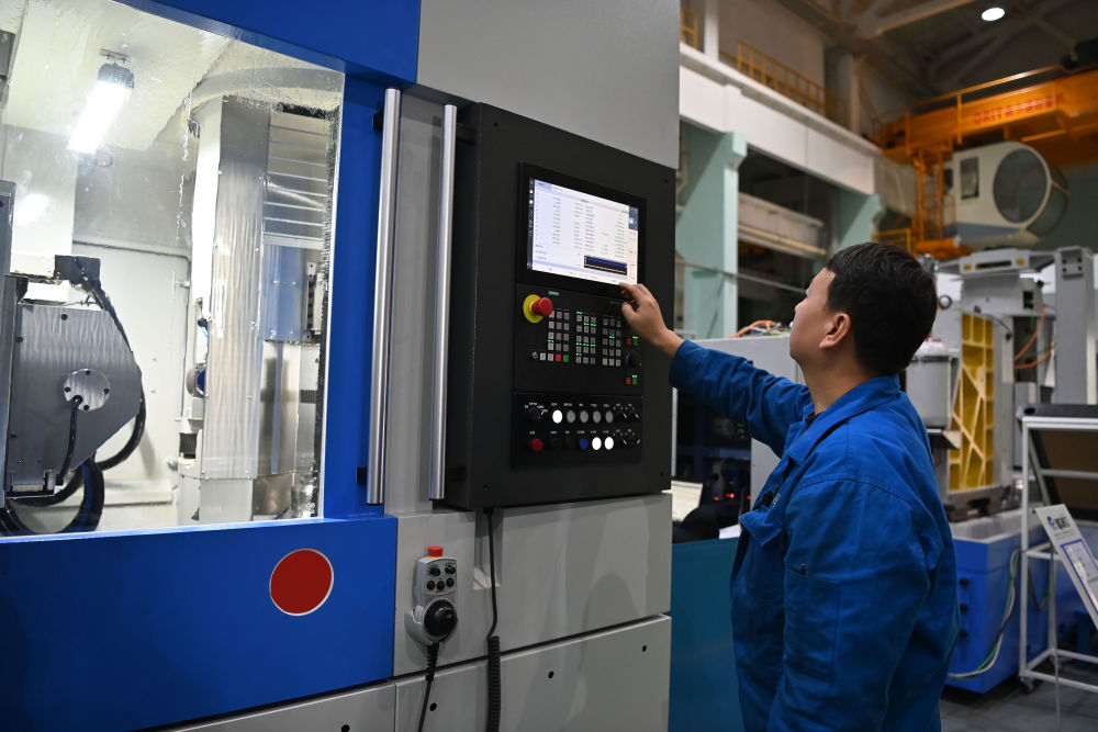 2025年10月28日,在秦川機床工具集團股份公司總裝車間,工作人員在調試機床。新華社記者 肖瀟 攝