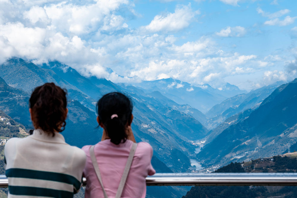 2025年10月20日,游客在云南省福貢縣匹河怒族鄉老姆登村的觀景臺拍攝怒江大峽谷風光。新華社記者 胡超 攝