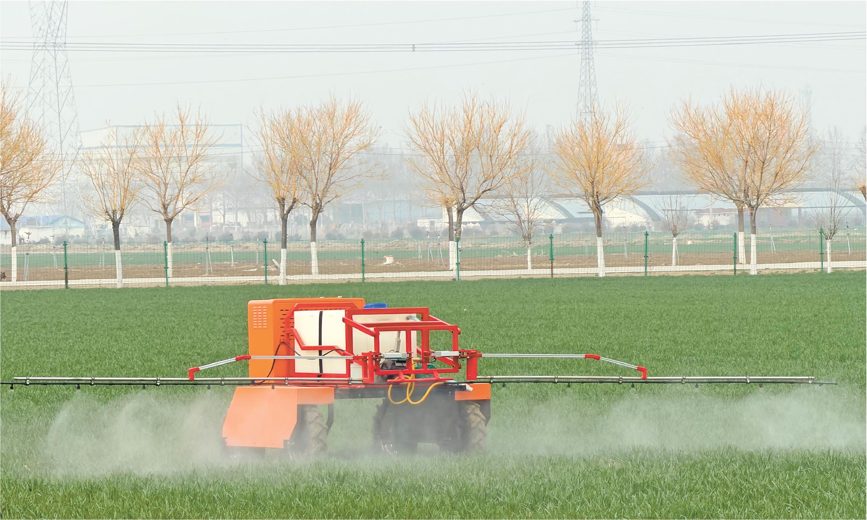 農場技術員王新文正在用平板電腦操控一臺打藥機器人開展田間作業,薄薄的“藥霧”均勻落在麥苗上。“它操作起來非常簡單,就像玩遙控玩具,但比玩具還智能。你設定好路線,它自己就能走。”王新文說。電腦屏幕上,機器人傳回的農田實時畫面清晰可見,麥苗的顏色、土壤的干濕,甚至葉片上的蟲眼都能放大查看。王新文輕輕推動操作桿,機器人的噴灑角度隨之調整。