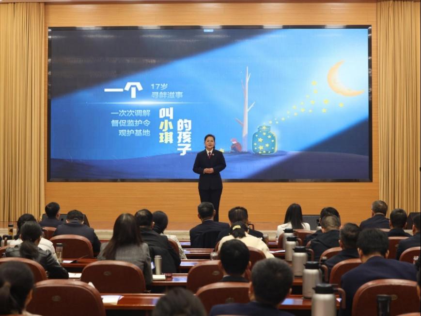 棗莊市嶧城區(qū)人民檢察院賈琨以《榴花映檢徽 護(hù)蕊向朝陽(yáng)》為題,講述了“榴花朵朵”未檢團(tuán)隊(duì)以法為盾、以愛(ài)為橋守護(hù)未成年人成長(zhǎng)的暖心故事,生動(dòng)詮釋了基層司法工作中的溫情與擔(dān)當(dāng)。