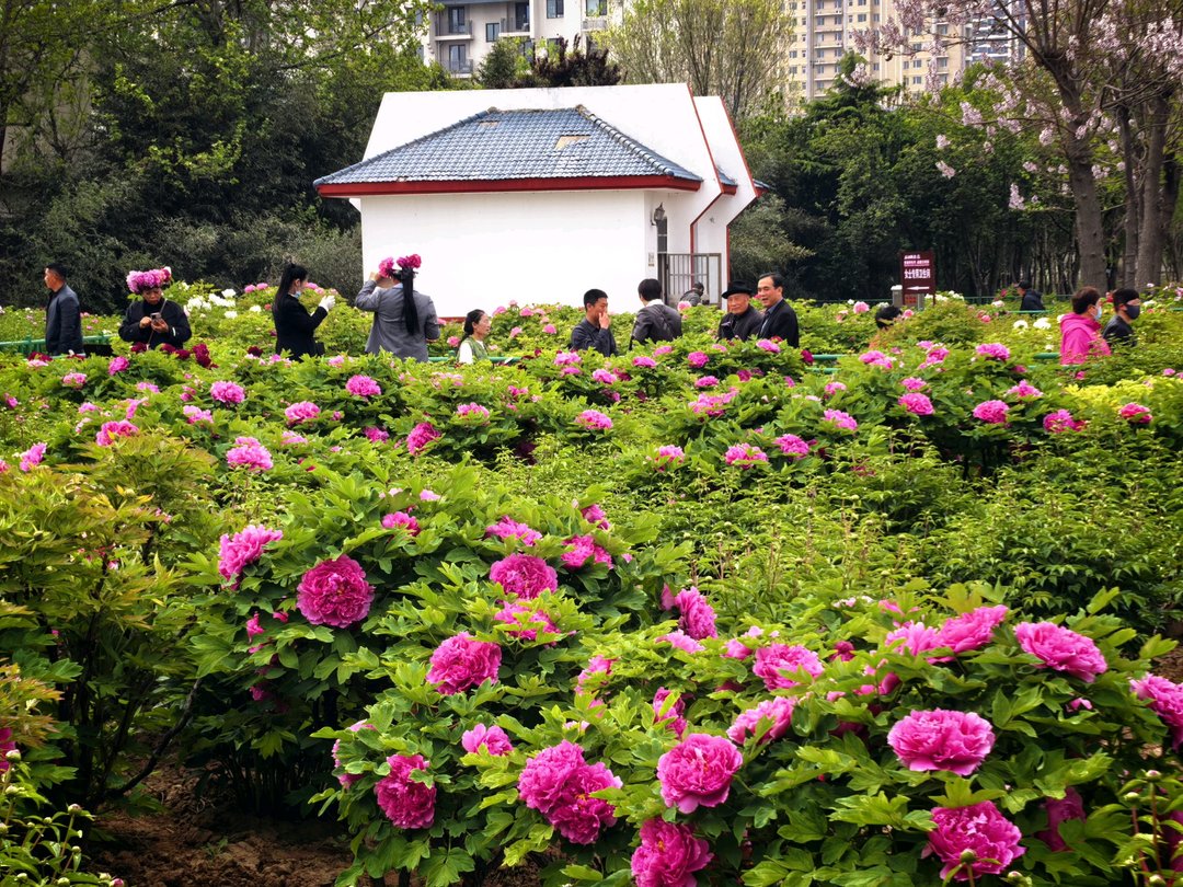 眼下,正是菏澤牡丹觀賞的黃金時段。園內姚黃、魏紫、豆綠、趙粉等傳統名貴品種競相開放,皇冠、雪映桃花等優質新品種風姿卓絕,九大色系、十大花型次第舒展,或端莊典雅,或清新秀麗,或艷麗奪目,盡顯“花中之王”的雍容氣度與國色天香。成片牡丹連綿成海,微風拂過,花香四溢,漫步其間,仿佛置身于水墨丹青與錦繡畫卷之中。而就在牡丹花海之側,以“珊瑚落日”為代表的早花芍藥已悄然登場,粉、紅、紫、黃各色花苞陸續綻放,柔美的花姿與挺拔的牡丹相互映襯,剛柔并濟,美不勝收。