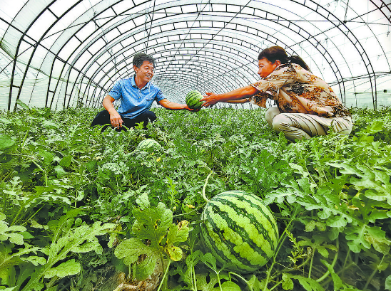口袋公園,一座座由石碾、石磙組成的建筑高低錯(cuò)落;采摘基地,一個(gè)個(gè)西瓜在瓜藤和綠葉間若隱若現(xiàn);花海之中,一朵朵清香撲鼻的金銀花掛滿枝頭……仲夏時(shí)節(jié),走進(jìn)曹縣青崗集鎮(zhèn)江海村,青磚黛瓦馬頭墻、新村舊落各美其美,村里的主干道直通水清木秀間。古老的村莊經(jīng)過再設(shè)計(jì),變成讓城里人心向往之的“綠富美”。