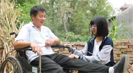 每當(dāng)父親疲憊不堪,而康復(fù)又不見效果時,父親的情緒就會非常低落。這時,王琪就會用輪椅推著父親去散心,緩解父親的情緒。她還常常給父親講一些學(xué)校里發(fā)生的趣事,逗父親開心。父親常常被她逗得開懷大笑,看到父親笑了,王琪比父親還要開心。