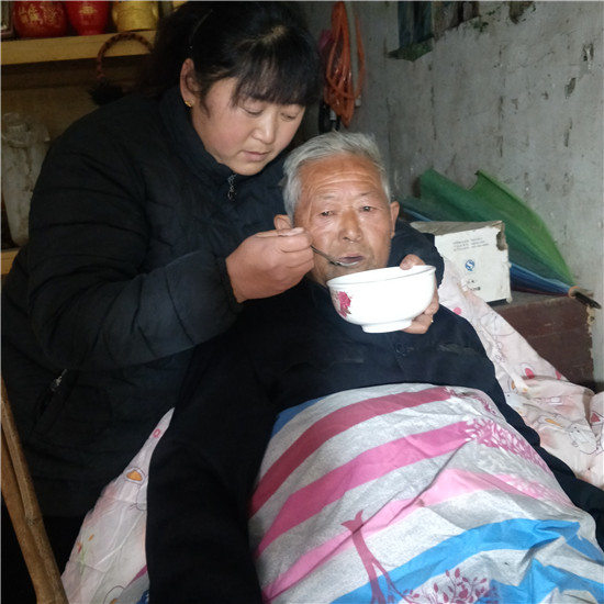 45歲的張?jiān)凭占易慰h終興鎮(zhèn)王里莊村,丈夫滿報(bào)文常年跟隨他人打零工,收入微薄。張?jiān)凭盏哪锛以诓贿h(yuǎn)的徐官廟村,是父母的獨(dú)生女。“公公、婆婆都65歲了,年紀(jì)雖不算大,但都患有高血壓病,重活累活不能干,家里家外全靠我?guī)兔Α!睆堅(jiān)凭照f,她的父母皆年逾古稀,一個(gè)患有腦中風(fēng)后遺癥,落下半身不遂,生活難以自理;一個(gè)患有冠心病,放置了支架,時(shí)常心痛發(fā)作。長年累月,張?jiān)凭彰刻煺疹欀?位老人。