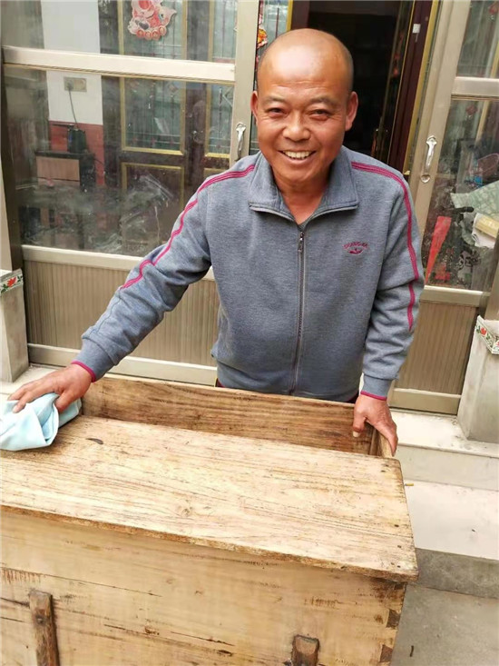 趙安先撫摸祖輩留下來的沿街叫賣使用的馓子箱子