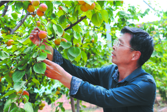 技術(shù)員查看杏樹長勢