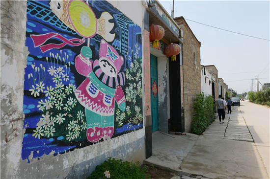 古街另一側(cè),院落外墻上現(xiàn)代氣息的壁畫連成一片,是村里與高校合作規(guī)劃設(shè)計(jì)并統(tǒng)一作畫。