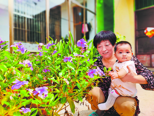 走進(jìn)村民孫在清的家,干凈整潔的庭院里,她正在引逗懷里幾個(gè)月大的孫女。進(jìn)入客廳,只見東側(cè)的墻上貼滿了孫子孫女的照片、獎(jiǎng)狀和畫作,正中間的幾個(gè)大字正是這個(gè)幸福生活的寫照:家和萬事興。