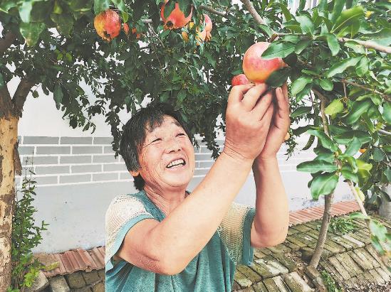 “過去村里走的是土路,住的是土屋,現(xiàn)在修了柏油路,大家住上了小樓房,土地全流轉(zhuǎn)出去,日子過得輕松自在。”今年63歲的馬銀花站在石榴樹下,嗅著石榴果香,十分享受眼下幸福無比的生活。