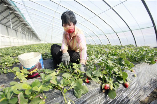 3月6日,在市開發(fā)區(qū)佃戶屯辦事處金河岸生態(tài)采摘園內(nèi),果農(nóng)正在為草莓掐葉打頂、疏花疏果,進(jìn)行細(xì)致管理,保證草莓果實(shí)質(zhì)量。據(jù)介紹,該生態(tài)園種植的草莓品種為甜寶,是從日本引進(jìn)的優(yōu)質(zhì)品種,果實(shí)軟,風(fēng)味佳,價(jià)格雖然比普通品種高出1倍還多,但在市場上仍很受歡迎。按今年的市場價(jià)格,一個(gè)1.5畝的草莓大棚收入可達(dá)5萬元左右。記者 周東倫 攝