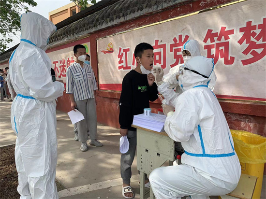近日,為確保復學復課工作順利進行,市開發區各學校開展了核酸檢測工作。采樣現場,學校師生積極配合醫務人員,做到不近距離接觸、不扎堆,依次采樣,采樣結束后迅速離開。采樣現場秩序井然,應檢盡檢、不漏一人。圖為市開發區陳集鎮中學核酸檢測現場。