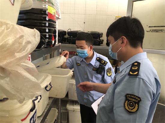 為做好高考、中考期間校園食品安全監管工作,近日,市開發區綜合監管部結合“守底線、查隱患、保安全”專項行動,對轄區學校食堂、集體用餐配送單位加大檢查力度,進一步規范原料進貨查驗、餐食加工制作、餐具清洗消毒、食品留樣等行為,督促相關單位落實主體責任,嚴把食品安全關。記者 黃啟峰 攝