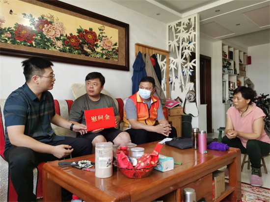 “感謝黨和政府的關(guān)心,謝謝!”近日,市經(jīng)濟開發(fā)區(qū)退役軍人服務辦公室負責人向突遭家庭變故的現(xiàn)役軍人劉鶴送去了2000元慰問金,并表示,盡可能幫助劉鶴解決家庭現(xiàn)實困難,讓其安心服役。據(jù)了解,市經(jīng)濟開發(fā)區(qū)退役軍人服務辦公室接到市退役軍人事務局轉(zhuǎn)送的《關(guān)于協(xié)調(diào)辦理劉鶴同志慰問救濟函》后,高度重視并第一時間聯(lián)系劉鶴詳細了解情況,表達軍地的組織關(guān)心。記者 孫濤 攝