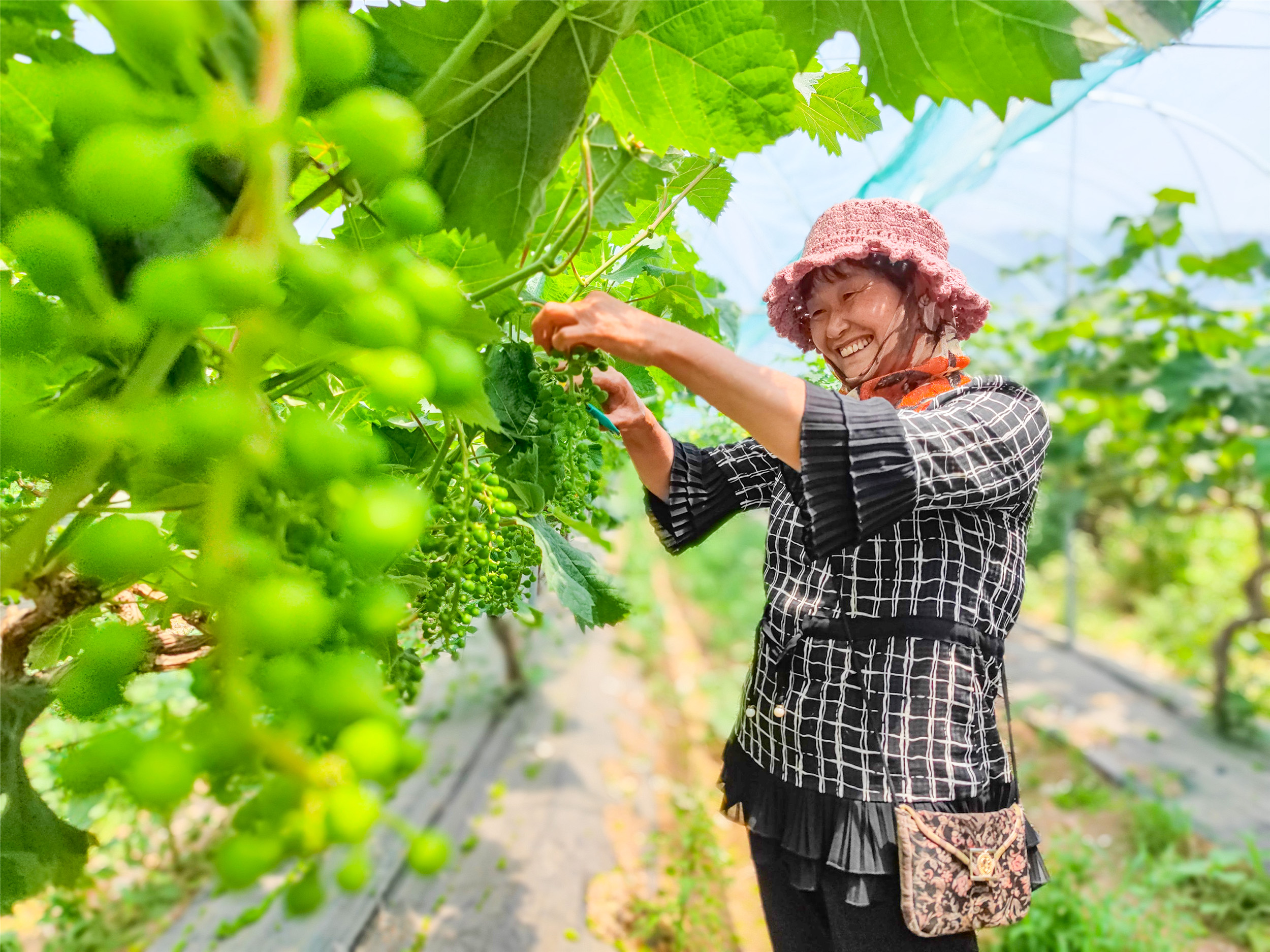 6月28日,記者在市開發區佃戶屯街道張和莊社區葡萄種植基地看到,果農正熟練地給葡萄串疏果,為今年葡萄優質高產創造良好條件。據了解,疏果是葡萄果實管理的一個重要環節,通過合理的疏花疏果,不僅果形好看,果粒增大,更能達到豐產穩產和質好品優的目的。 記者 李保珠 攝