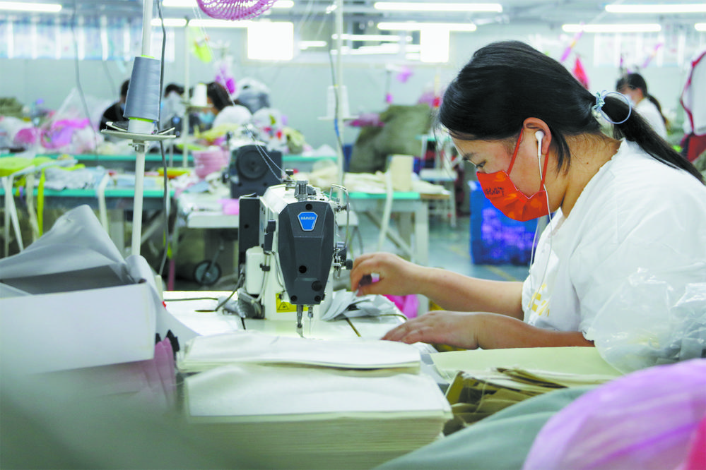 8月8日,在牡丹區(qū)沙土鎮(zhèn)的菏澤鑫隆箱包有限公司生產(chǎn)車間,工人在緊張忙碌。連日來,牡丹區(qū)各企業(yè)在全面做好疫情防控工作的同時,陸續(xù)復工復產(chǎn),加足馬力生產(chǎn),全力保障市場供應。