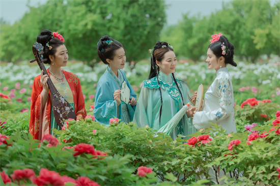 4月14日,位于牡丹區(qū)黃堽鎮(zhèn)的冠宇牡丹園內(nèi),當(dāng)?shù)毓ぷ魅藛T在盛開(kāi)的牡丹叢中展示唐、宋、明、清不同朝代的特色服飾,華服的國(guó)風(fēng)之美與牡丹的華貴之韻相映構(gòu)成了春日里一道靚麗的風(fēng)景。牡丹文化旅游節(jié)期間,當(dāng)?shù)貒?guó)風(fēng)愛(ài)好者們通過(guò)自己的實(shí)際行動(dòng)來(lái)促進(jìn)菏澤牡丹文化和傳統(tǒng)文化的相融,讓各地游客感受到牡丹帶來(lái)不一樣的國(guó)風(fēng)魅力。記者 李若生 攝