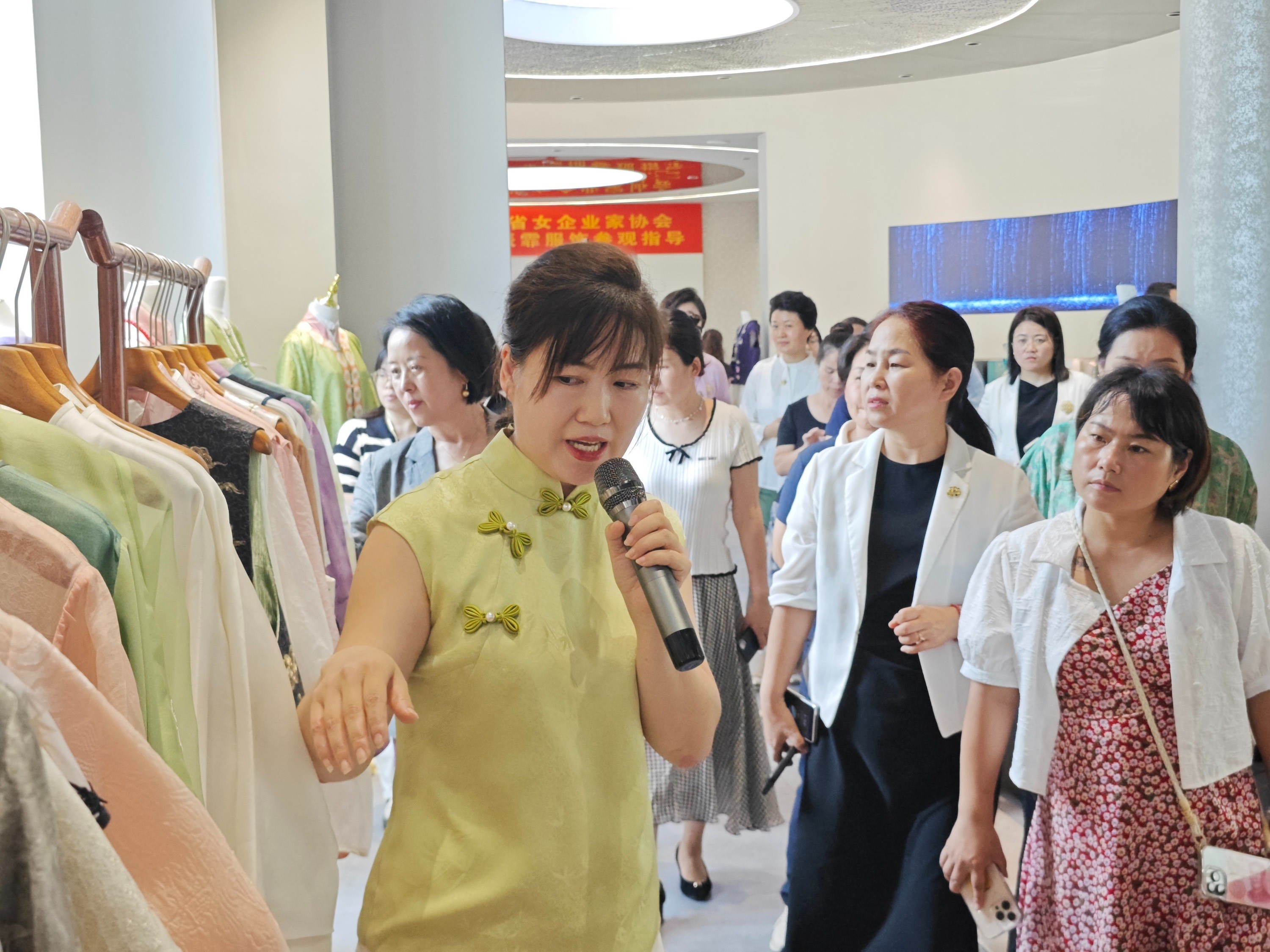 8月7日,在曹縣有愛共創漢服直播基地,來自省、市女企業家協會的企業代表正在聽工作人員講解曹縣漢服產業發展情況。據了解,本次女企業家交流活動不僅拓寬了女企業家的發展視野,為企業注入新的發展動能,更為外地企業架起長效溝通橋梁,推動建立了常態化的學習交流與合作互動機制。下一步,省女企業家協會將持續聚焦數字經濟發展趨勢,緊扣“數字強省”戰略部署,不斷豐富培訓形式、拓展賦能領域,組織更多針對性強、實效性高的交流活動,推動全省女企業家群體在傳統產業數字化轉型中主動作為、勇挑重擔,為全省經濟高質量發展貢獻“她力量”。