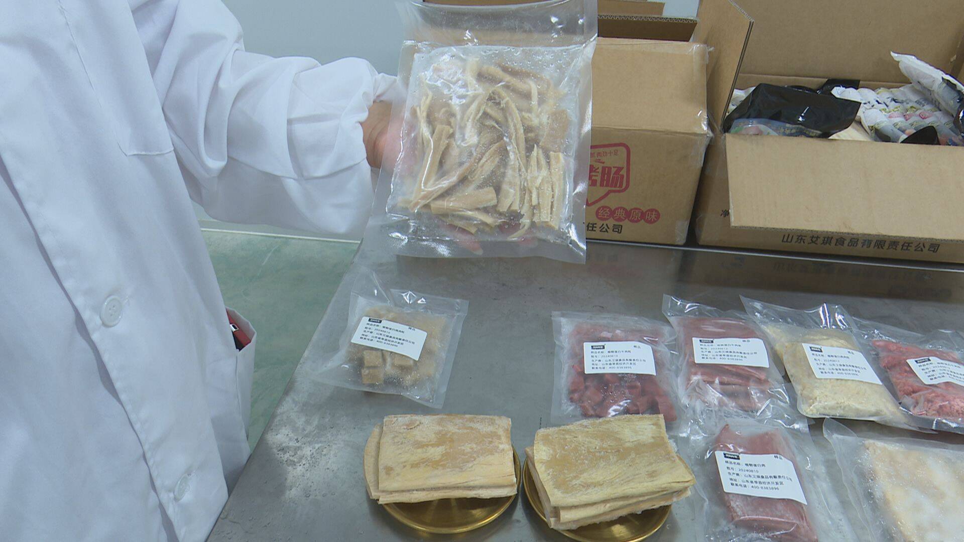 山東艾琪食品有限責(zé)任公司負(fù)責(zé)人孔德鳳:我們公司不僅是植物蛋白肉行業(yè)標(biāo)準(zhǔn)的起草單位,還持有多項(xiàng)發(fā)明專利,涵蓋植物蛋白肉的生產(chǎn)工藝、調(diào)味料配方及食品安全技術(shù)。研發(fā)中心配備先進(jìn)的檢測設(shè)備,從原料篩選到成品出廠,每一個環(huán)節(jié)都嚴(yán)格把控,確保產(chǎn)品符合國際食品安全標(biāo)準(zhǔn)。