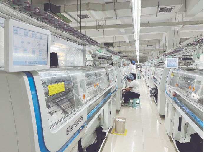 走進山東省巨野縣萬麗服飾7萬平方米的智慧園區,600臺電腦橫機以每分鐘40轉的節奏高效運轉,織好的毛衫片如流水般滑出生產線,平均每15秒就有一件成衣下線。“在這里,每位工人能同時操作6至8臺設備,智能織片、數字整燙、精密縫盤、專業水洗等10余道工序環環相扣。”公司副總經理張春紅的介紹,道出了企業“向新”的核心底氣。