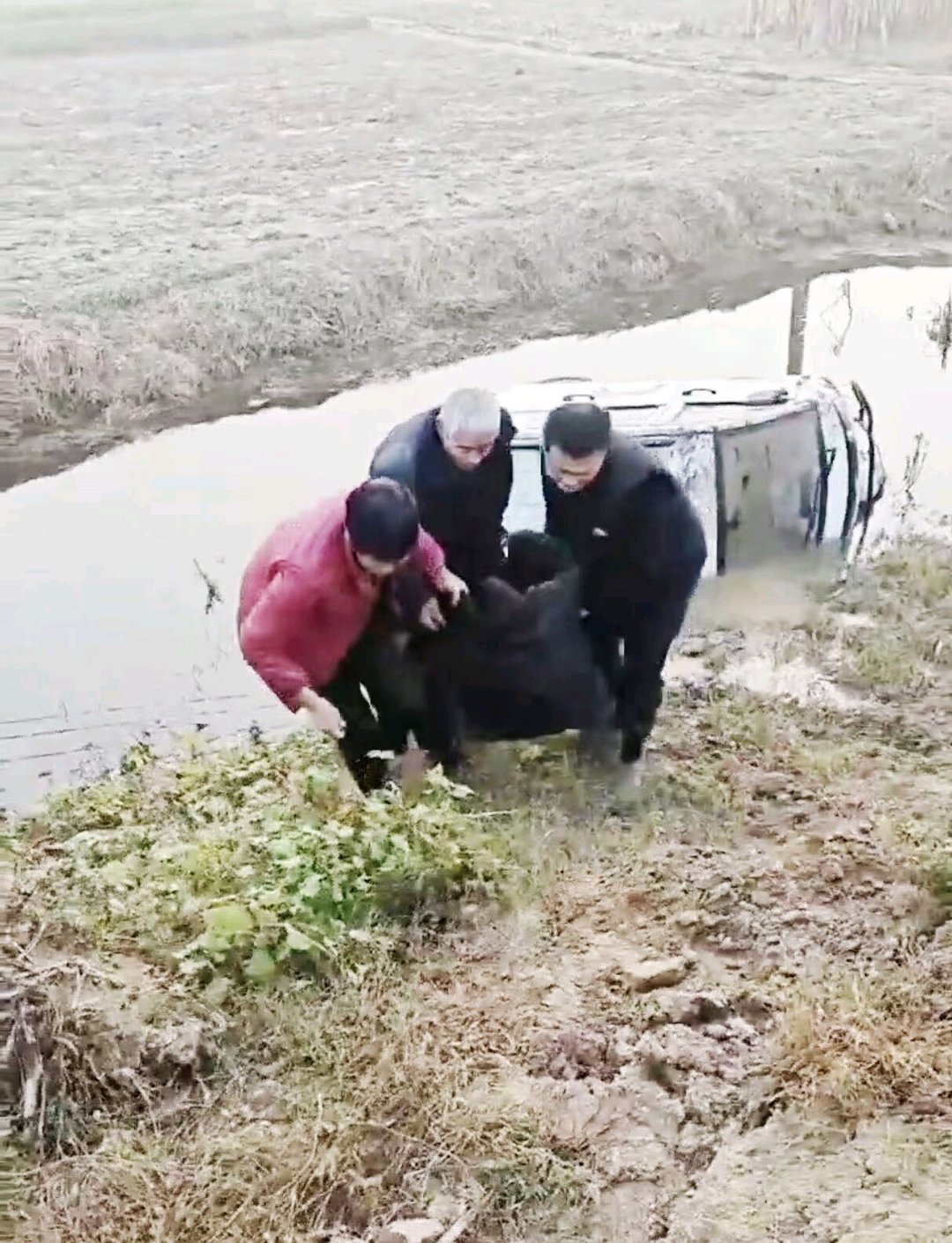“我們村的村民朱金花滿臉焦急地沖向河邊,我心中一緊,想著肯定出事了,立即停車跑過(guò)去查看。”崔利營(yíng)回憶說(shuō),走到河邊他看到,河溝中一輛電動(dòng)三輪車側(cè)翻在水中,車身大半被河水浸泡,車內(nèi)一名老人被困動(dòng)彈不得。岸邊兩位老人急得連聲呼喊,卻因年邁無(wú)力施救,現(xiàn)場(chǎng)情況十分危急。