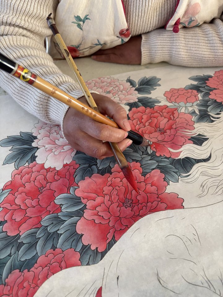 這里的成長(zhǎng)從不是一蹴而就。工筆牡丹畫看似簡(jiǎn)單,實(shí)則需經(jīng)長(zhǎng)期打磨,這份慢功夫里,藏著對(duì)弱勢(shì)群體的耐心,政府每年500萬(wàn)元資金扶持、“樹(shù)品牌育人才拓市場(chǎng)”的政策指引,加上畫院多元化銷售渠道的開(kāi)拓,讓非遺技藝不僅能傳承,更能變現(xiàn),讓學(xué)員既能兼顧家庭,又能收獲尊嚴(yán),甚至讓“我媽是畫家”成為孩子驕傲的底氣。