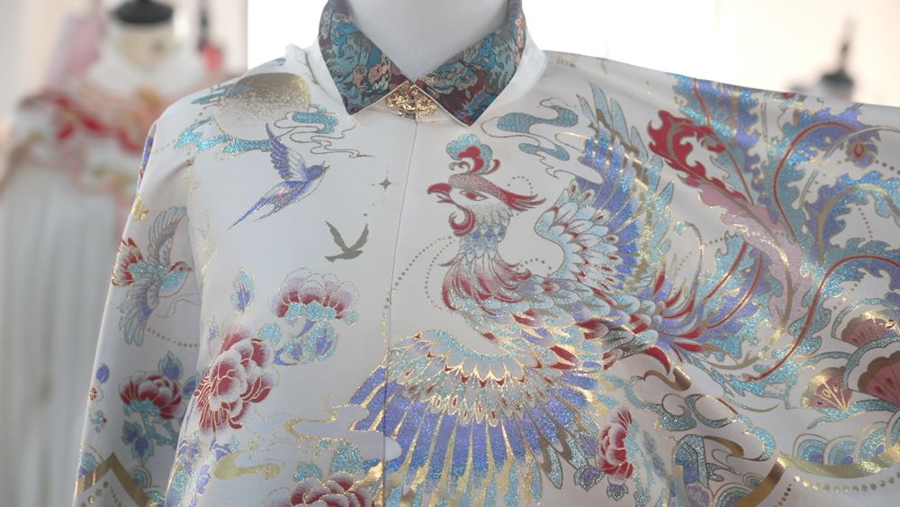 在當(dāng)?shù)卦瓌?chuàng)漢服品牌洛如嫣的展廳里,設(shè)計師向記者展示了一款名為“百鳥朝鳳”的明制漢服。它在制作過程中采用了對花工藝等技術(shù),保證了圖案的美觀和完整性,提升了服飾的精致度與藝術(shù)價值。