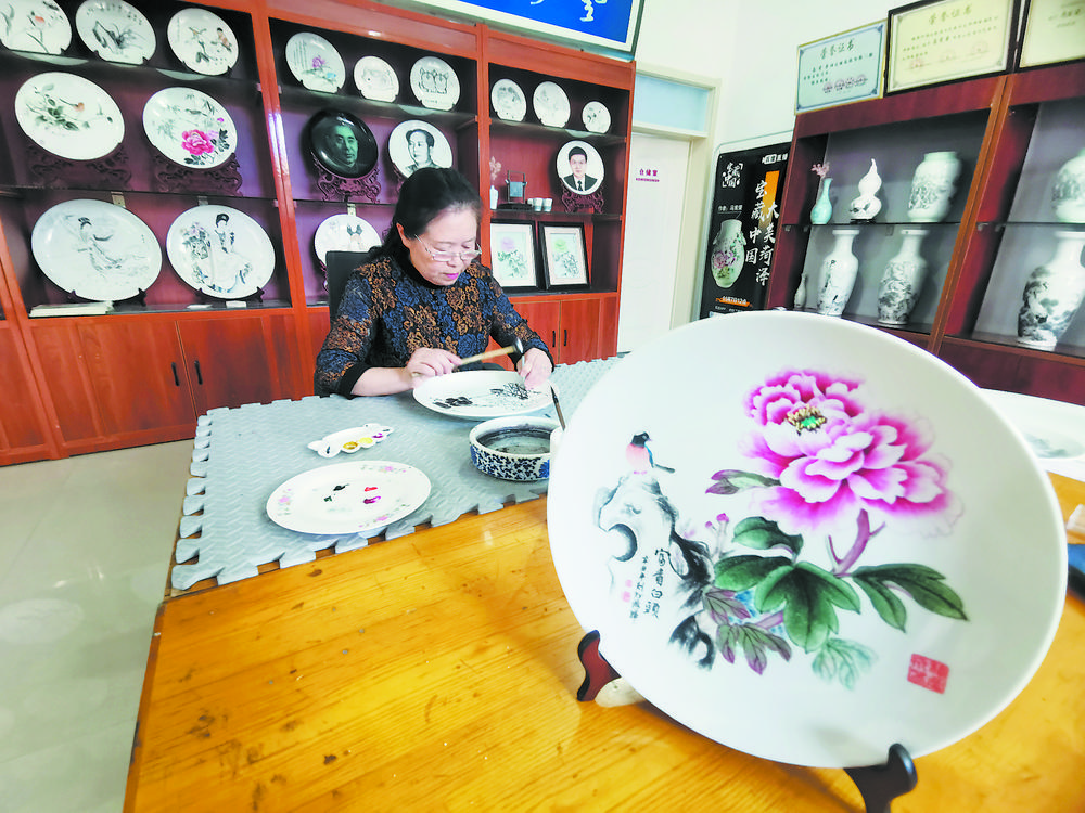 在馬憲榮眼里,曹州刻瓷是融匯書法、繪畫、篆刻于一體的綜合藝術,想要創新就先要把刻瓷的技法吃透。“一件真正的曹州刻瓷,質感明暗關系是刻出來的,不是畫出來的。”馬憲榮說,她在傳承傳統圖案的基礎上,根據消費者的審美需求,勇于創新,創作題材涵蓋古今中外。