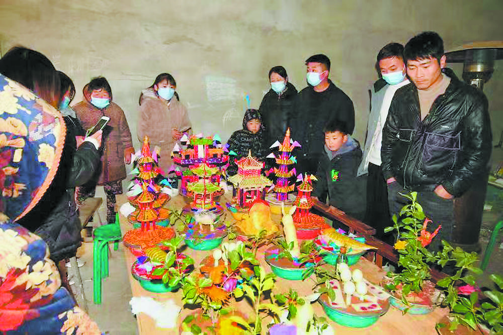 制作花供是一項非常辛苦的工作。通常情況下,以村各街道為單位,抽出熱衷于花供制作的男勞力組成制作小組,并選定一處臨時作坊,于正月初六晚上開始制作,直至初七凌晨,一桌花供經過著色、擺放,才算制作完畢。