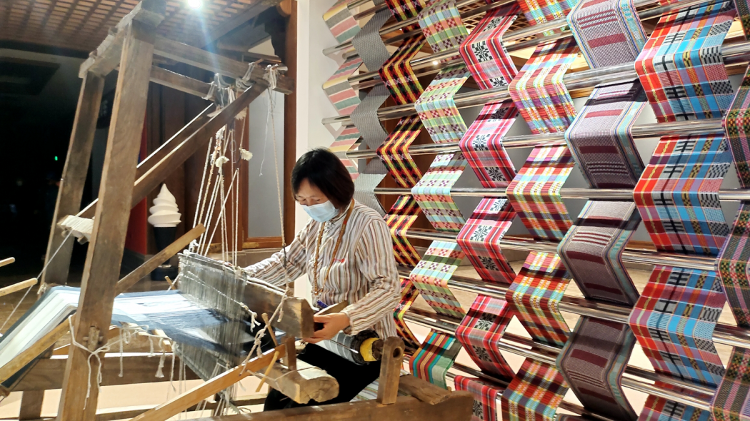 源自民間的鄄城魯錦,則用彩色的棉線,將人們對(duì)生活的熱愛(ài)與秋日的絢爛一同織入經(jīng)緯。“魯錦”之名,源于它如錦緞般繁復(fù)瑰麗的圖案與扎實(shí)厚重的質(zhì)感。 織造時(shí),“織女們”通過(guò)手工撥動(dòng)不同的色線,織出“龜背錦”“狗牙梅”“十樣景”等紋樣。一條魯錦圍巾,色彩斑斕而古樸厚重,圍在頸間,是抵擋秋涼的溫暖;一塊魯錦桌布,圖案吉祥又織工精細(xì),鋪于案上,便是點(diǎn)亮日常生活的藝術(shù)。它握在手中的那份踏實(shí)感,讓人仿佛能觸摸到秋天溫暖的質(zhì)感與魯西南勞動(dòng)人民的堅(jiān)韌匠心。