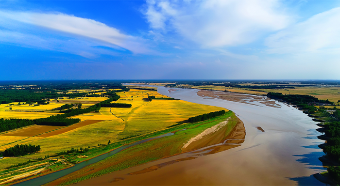 “母親河”黃河在菏澤境內(nèi)蜿蜒而過(guò),入秋后便進(jìn)入了它最溫婉寧?kù)o的季節(jié)。水勢(shì)變得平緩,河面如鏡,映照著流云與晴空,天光水影共徘徊。岸邊的防護(hù)林帶換上金裝,與一望無(wú)際的金色稻田交織錯(cuò)落,構(gòu)成一幅壯闊而溫暖的豐收長(zhǎng)卷。夕陽(yáng)西下時(shí),余暉將整片河面染成橙紅,歸舟的漁歌與遠(yuǎn)處村莊的裊裊炊煙,共同吟唱著魯西平原最渾厚、最富足的秋日大氣象。