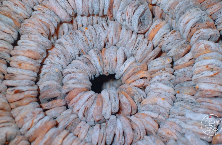 秋日的曹州,最亮眼的一抹顏色莫過(guò)于掛滿枝頭的“小燈籠”——鏡面柿,它們不僅是秋景的點(diǎn)綴,更是菏澤匠人巧手創(chuàng)造美味的開(kāi)端。經(jīng)過(guò)霜打的柿子,糖分沉淀得恰到好處。采摘、削皮、晾曬……在干燥的秋風(fēng)與和煦的秋日共同作用下,一顆顆橙紅的鏡面柿逐漸收斂水分,披上一層潔白的糖霜,蛻變?yōu)檐浥聪闾鸬牟苤菔溜灒_(kāi)一枚,可見(jiàn)晶瑩的內(nèi)陷流心。入口,那股扎實(shí)的、帶著陽(yáng)光氣息的甜潤(rùn),瞬間充盈口腔,果膠的Q彈與糖霜的微沙在唇齒間交織。這枚小小的柿餅,完美封存了秋陽(yáng)的溫暖與慷慨,是菏澤秋天最經(jīng)典的甜點(diǎn),也是一代代菏澤人心中無(wú)法替代的童年記憶。