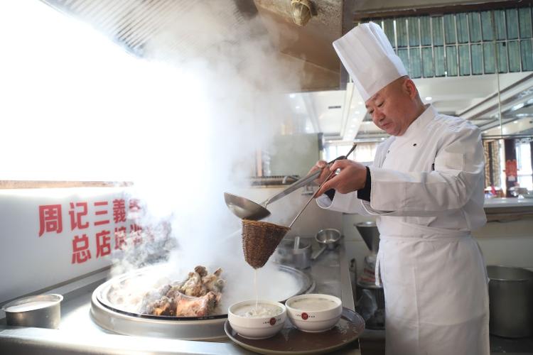 如果說(shuō)曹州柿餅是秋日的“婉約派”,那么單縣羊肉湯則無(wú)疑是“豪放派”的代表。天氣轉(zhuǎn)涼,一碗奶白滾燙、香氣四溢的單縣羊肉湯,便是菏澤人抵御秋寒最硬核的“武器”。單縣羊肉湯的奧義,在于精心挑選的當(dāng)?shù)厍嗌窖颍谟趥鞒邪倌甑莫?dú)特工藝。大鍋熬煮,數(shù)小時(shí)不熄火,使得骨髓與肉質(zhì)精華充分融于湯中,成就了其“色白似奶,水脂交融”的獨(dú)特品相。食用時(shí),無(wú)需過(guò)多繁復(fù)的調(diào)料,只需撒上一把香菜蔥花,點(diǎn)幾滴辣椒油,趁熱喝上一口,湯的鮮美、肉的醇香,便瞬間從喉嚨暖到胃里,再通達(dá)四肢百骸。這碗湯,不僅是菏澤人舌尖上的風(fēng)物密碼,更是外地游子歸鄉(xiāng)的念想寄托,是朋友小聚時(shí)的暖心款待,它用最直接的熱烈,給予菏澤人滾燙的秋日慰藉。