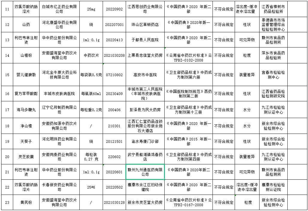 原標題:江西省2023年第3期藥品監督抽檢信息公告