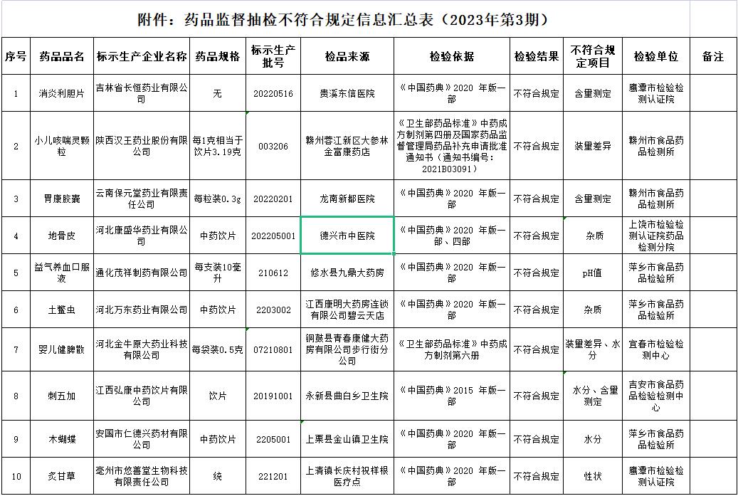 近日,江西省發布2023年第3期藥品監督抽檢信息公告,公告內容具體如下: