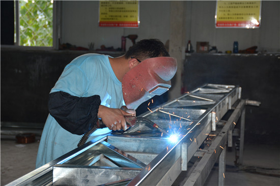 當日下午,記者跟隨陳明玉走進張西社區的鋼板材生產車間,務工人員各自忙著手中的活,有的焊接鋼材、有的搬運貨物……該車間以生產門窗為主,對技術要求不算高,因此吸引了不少周邊群眾前來就業。