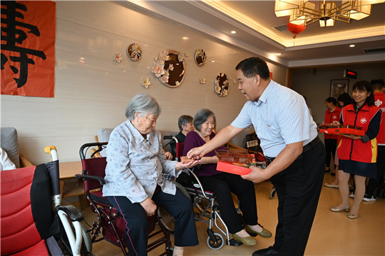 9月27日,菏澤市福利彩票銷售和管理中心主任馮相珍帶領(lǐng)部分黨員和志愿者,到菏澤市居家和社區(qū)養(yǎng)老服務(wù)示范中心開展志愿服務(wù)和慰問活動,為生活在這里的60位老人送去了月餅、牛奶等慰問品,并希望社會上更多的愛心人士關(guān)注老年人生活。 記者 馬 琳 攝