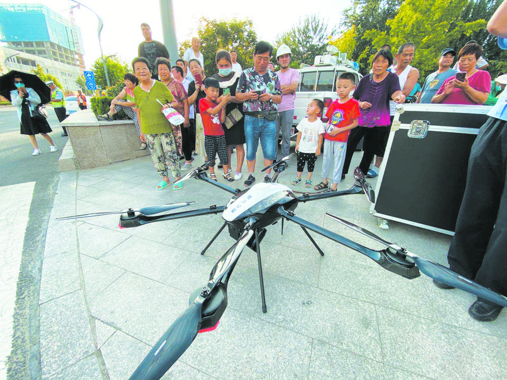 據悉,警用無人機搭載了高倍變焦廣角鏡頭和高音喊話器,依托這些設備,民警執勤就有了“千里眼”和“傳聲筒”。從高音喇叭里還實時“飛出”安全提示語,勸導行人、電動車遵守交通法規,安全文明出行,具有很強的警示教育作用,也提高了巡邏效率。