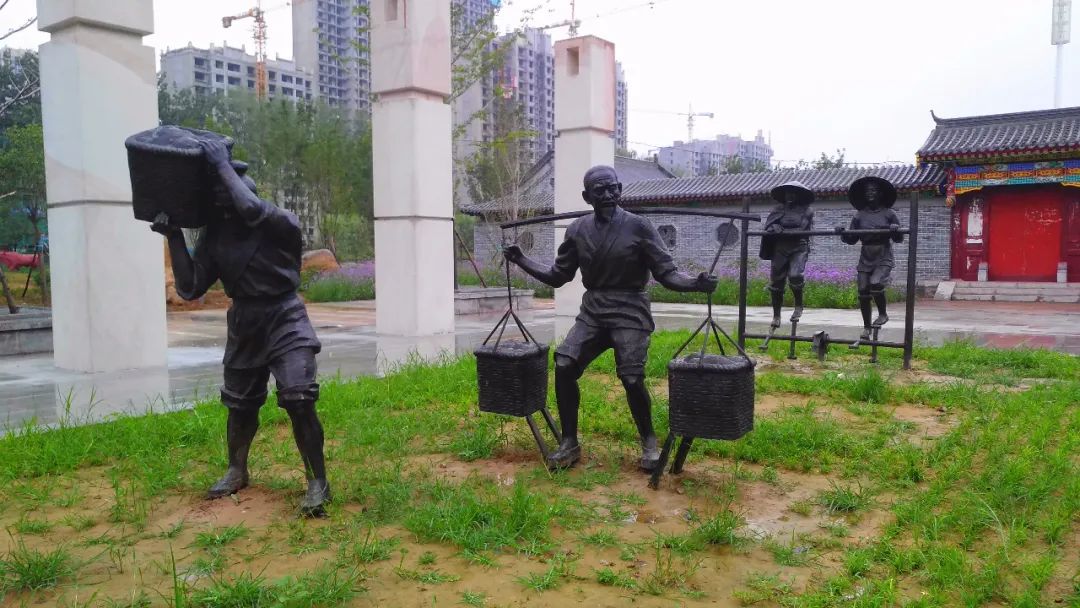筑堤紀念園里這些雕塑生動還原了當年筑堤的場景。菏澤護城大堤和護堤河始建于明嘉靖元年(公元1522年),是防止水患而修建的防洪河道,至今已有近500年的歷史。