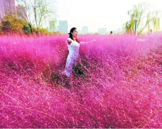 近日,秋高氣爽,正是攜三五好友、欣賞秋色的好時節。菏澤市黃河路北側、趙王河畔,一團仙氣十足的“粉色云霧”悄然來襲。