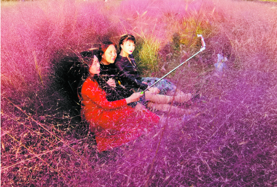 記者目測,這片“網紅草”面積不太大,長、寬各一二百米,中間有幾條供游客游覽穿梭的小徑。記者現場咨詢幾名攝影家和花草愛好者,他們說粉黛亂子草花期一般在9月中旬至11月上旬。開花時,粉紫色花穗如發絲,從基部長出,曼妙輕盈,如夢似幻。