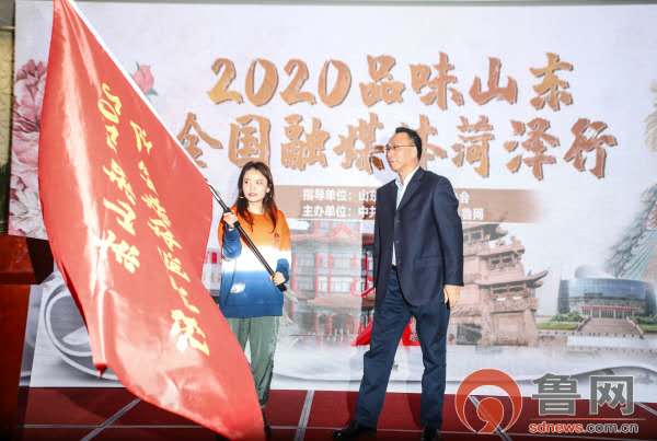 啟動儀式現(xiàn)場舉行了授旗儀式。山東省新聞工作者協(xié)會副秘書長兼辦公室主任張中順將“2020品味山東·全國融媒體菏澤行”活動的隊旗交到了采訪團代表、新華網(wǎng)記者張曉琪手中。