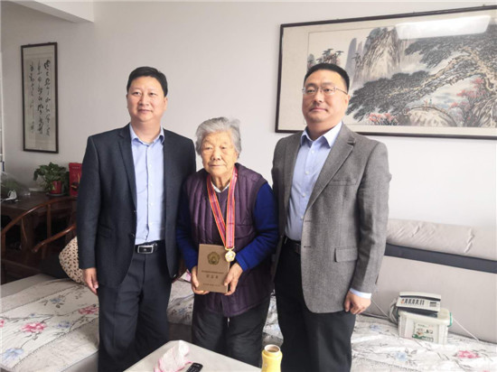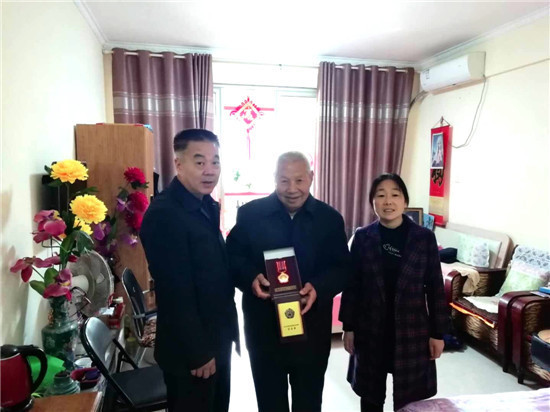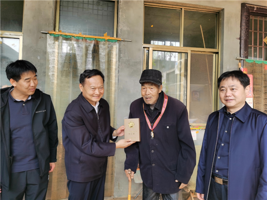 圖⑨鄆城縣退役軍人事務局組織工作人員上門為志愿軍老戰士頒發紀念章