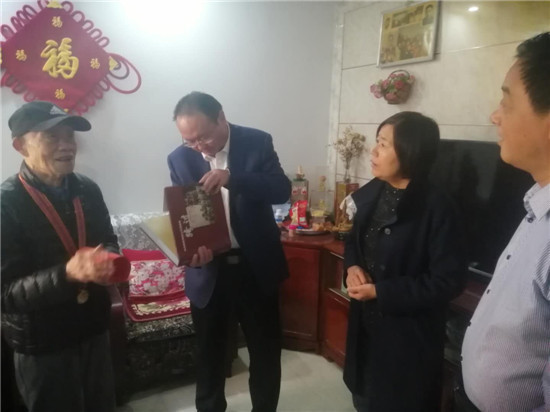 圖①副市長高榮國一行慰問抗美援朝老戰士并頒發紀念章